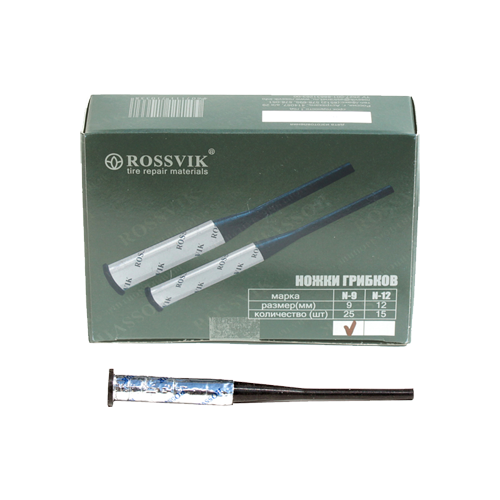 Предназначены для заполнения каналов повреждений в грузовых шинах радиального и диагонального типов. Применяются в случаях, когда угол повреждения составляет более 25° относительно перпендикуляра к плоскости беговой дорожки. Для надежного ремонта отверстие, подготовленное под установку ножки, должно быть на 2-3мм меньше диаметра ножки. Для получения правильного отверстия рекомендуется применять карбидные буры и низкооборотистую реверсивную шлифмашинку (500 об/мин.) Ремонт ножками производится “холодным” или “горячим” способом, с дублированием места ремонта кордовым пластырем